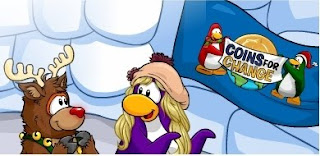 Coins For Change is all about playing games to earn coins... and then donating coins at stations around the island. Every donation of coins in Club Penguin means you'll be helping decide how a 1 million dollar donation will be divided. This year the categories are: helping kids who are poor, helping kids who are sick, and helping the environment. And this year, there'll be some new ways to donate and celebrate - including a benefit concert at the Lighthouse!!